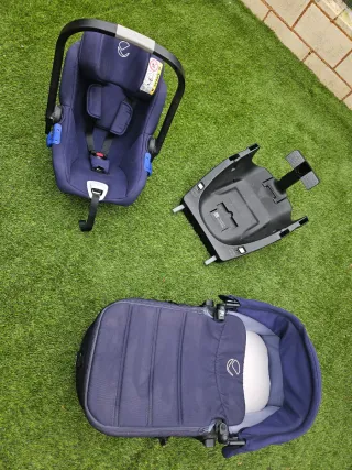 Silla de coche Jané y capazo azul