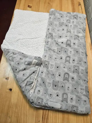 Saco de arrullo con un divertido estampado de ositos. Ideal para el capazo. Muy poco uso. Con varios velcros para cerrarlo de diferentes maneras.