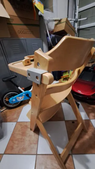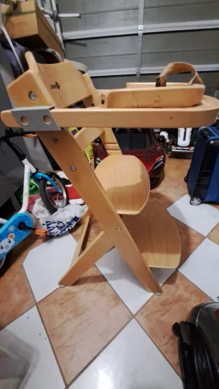 Trona de madera para bebé, ideal para las comidas. - Marca: Safety First - Material: Madera. - Bandeja y cinturón desmontables. - Diseño seguro y estable. - Primera calidad