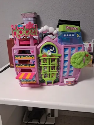 Divertido hotel de juguete Pinypon. - Diseño de hotel con múltiples niveles. - Incluye accesorios decorativos. - Colores vibrantes y detalles temáticos.