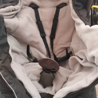 Saco para silla de bebé, ideal para mantener a tu pequeño abrigado y cómodo. - Diseño acolchado. - Tejido exterior de color beige. - Detalle de puntitos en el interior. - Aberturas para el arnés.
