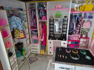 Diorama artesanal a escala 1:6, diseñado como vestidor de lujo para muñecas tipo Barbie / Fashion Doll. Construido íntegramente a mano, cuidando proporciones, distribución y acabados. Incluye estructura: 2 armarios (uno principal y uno secundario) Vestidor independiente Isla central con cajones Diseño modular y estable ⏱️ Más de 40 horas de trabajo artesanal 🛠️ Materiales de calidad 💡 No incluye iluminación Opciones de compra: 🔹 Solo diorama o diorama con accesorios. Ideal para coleccionistas, exposición, fotografía. Pieza única.