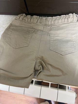 Pantalón de bebé de color beige, con cintura elástica. - Talla 12m - 74cm. - Cierre con botón y cremallera. - Bolsillos delanteros y traseros. - Trabillas para cinturón.