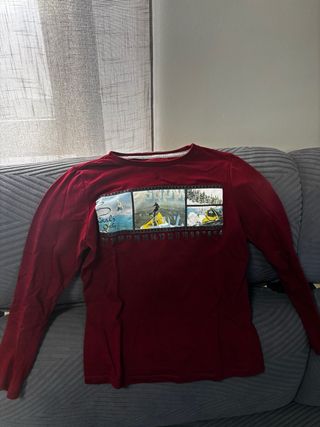 Camiseta roja manga larga estampada
