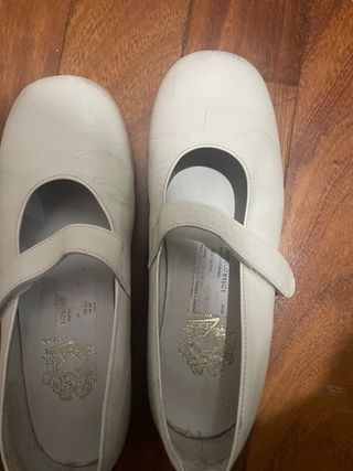 Zapatos blancos de comunión talla 31. - Color beis y material de piel - Talla 31. - Cierre de velcro. - Marca: Lona. - Muy poco uso y con un poco de tacón costaron 42€