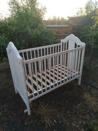 Cuna de bebé en perfecto estado. Es blanca y tiene ruedas para facilitar su movilidad. - Estructura de madera. - Color blanco. - Incluye ruedas. Precio negociable