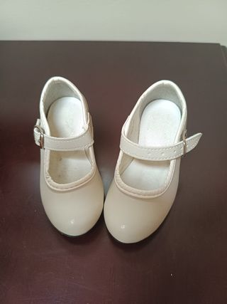 Bonitos zapatos para niña en color beige, perfectos para cualquier ocasión. - Diseño clásico con tira. - Cierre de hebilla.