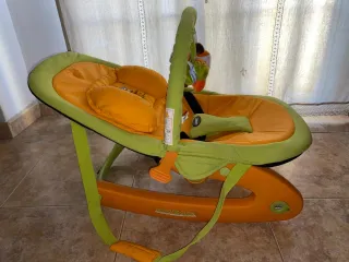 Mecedora para bebé, ideal para relajar al pequeño. - Diseño acolchado y suave. - Estructura plegable para fácil almacenamiento. - Incluye juguetes colgantes.