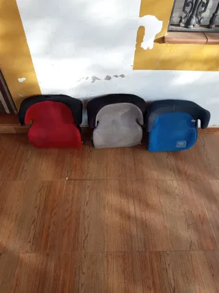 Se venden tres sillas elevadoras para niños, ideales para el coche.5€ cada una - Una silla de color rojo. - Una silla de color gris. - Una silla de color azul.