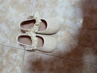 Preciosas bailarinas para comunión o eventos especiales. - Diseño elegante con tira y detalle de perlas. - Color blanco, ideal para ceremonias. - Usada sólo un dia Precio a estrenar 59.90