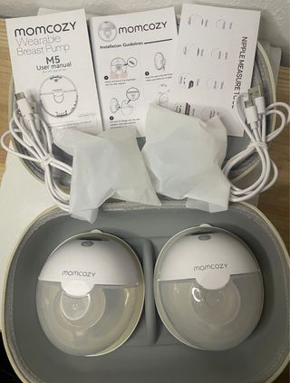 Sacaleches eléctrico portátil de la marca Momcozy, modelo M5. Incluye un estuche de transporte. - Diseño compacto y ligero. - Incluye dos sacaleches. - Estuche de color blanco. Usado solo dos veces.
