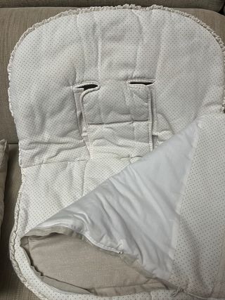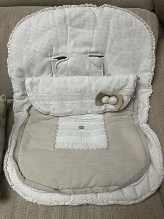 Saco para cuco de la marca MARCOS. - Diseño acolchado con estampado de topos. - Detalle de lazo y pompones. - Bolsillo frontal con adornos de puntilla y volante. - Cremallera para facilitar el acceso.