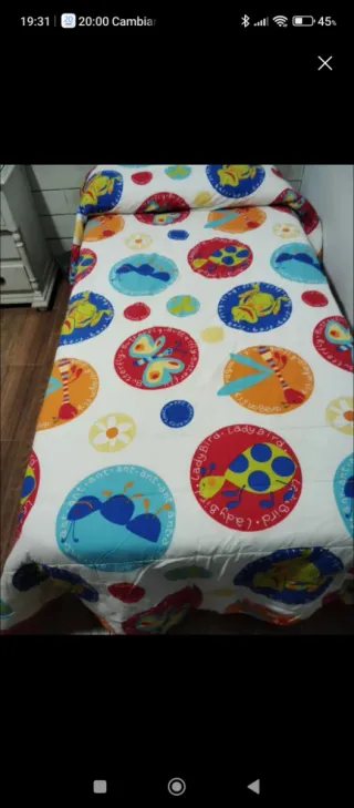 Edredón infantil con un diseño alegre y colorido, perfecto para la habitación de los más pequeños. - Estampado de animales y mariposas. - Tonos vibrantes como rojo, azul y naranja. - Tejido suave al tacto.