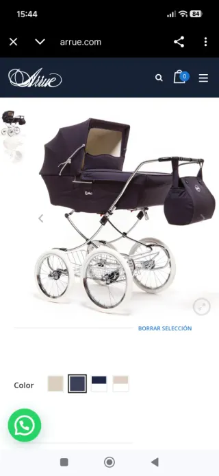 Carro de capota Arrue Classic en color azul marino. - Capota amplia para proteger del sol. -Chasis de acero cromado, con ruedas de gran diámetro de estilo más clásico y elegante. Precio negociable. RECOGIDA EN MANO.