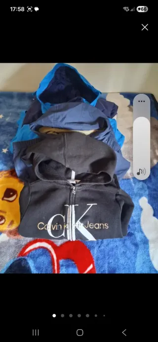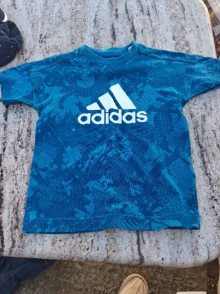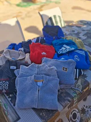 Lote de ropa para niño de 4 años. - Incluye varias prendas de marcas reconocidas como Nike, Adidas y Real Madrid. - Prendas de punto, sudaderas y chaquetas. - Diseños variados y coloridos.