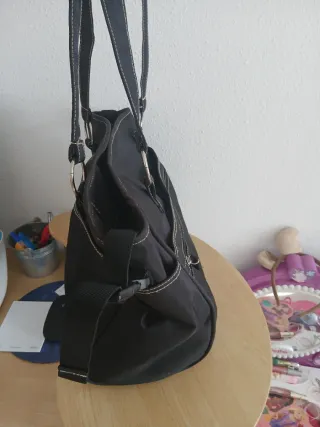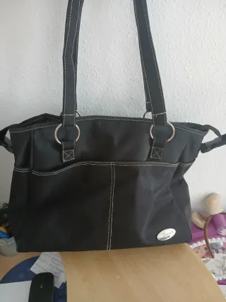 Bolso negro para carro de bebé de la marca Hauck. Diseño moderno y práctico. - Color negro. - Detalle de costuras blancas. - Compartimentos exteriores.