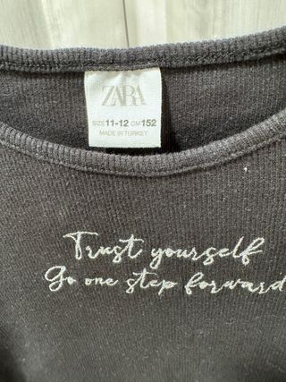 Camiseta de manga larga para niña de Zara. - Color negro. - Diseño con texto Trust yourself Go one step forward. - Tejido acanalado.
