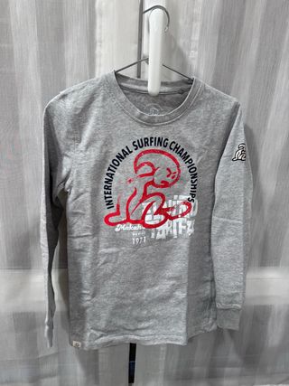 Camiseta de manga larga gris con estampado. - Diseño International Surfing Championships. - Detalle de Makaha Hawaii 1971. - Estampado de personaje en rojo y blanco. - Pequeño logo en la manga izquierda.