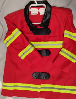 Disfraz de bombero. Talla 7-9años (120-130 cm) - Detalles reflectantes en mangas y torso. - Cuello negro. - Cierres negros decorativos. La marca que se ve en de haberle hecho un apaño para su talla. Por eso el precio.