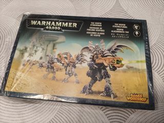 Caja de miniaturas de Warhammer 40,000 clasica, modelos aguijones alados Vespid en metal. Consta de 6 aguijones alados Incluye peanas - original warhammer - en perfecto estado y por estrenar - Producto descatalogado, dificl de encontrar nuevo sin montar, ideal coleccionistas - precinto solo abierto para comprobar contenido