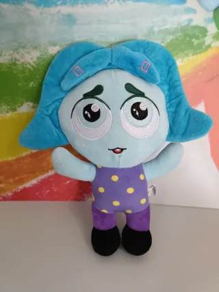 Peluche del personaje Tristeza de Disney Pixar. Es suave y perfecto para coleccionar. - Color azul y morado. ▪️TIENE UN PEQUEÑO DESPERFECTO EN LA MANO,SE VE EN LA ÚLTIMA FOTO. - Detalles bordados. - Diseño de lunares amarillos.