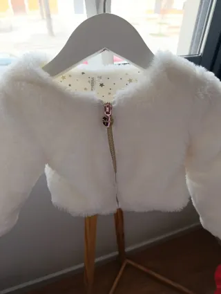 Chaqueta de pelo suave para bebé niña. - Color blanco. - Cierre de cremallera con detalle de corazón. - Manga larga. - Forro interior con estampado de estrellas.