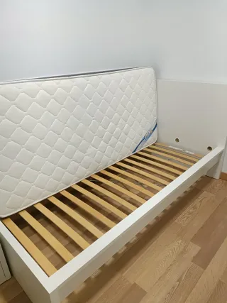Se vende cama individual de 90cm con su colchón. - Estructura de cama blanca. - Cabecero blanco. - Colchón incluido.