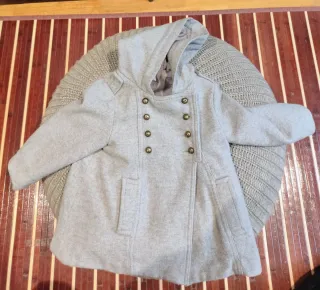 Chaqueta infantil de paño gris, ideal para entretiempo. - Talla: 24-36 meses. - Diseño con doble botonadura. - Capucha incorporada. - Bolsillos delanteros. En muy buen estado. Solo ventas por wallapop.