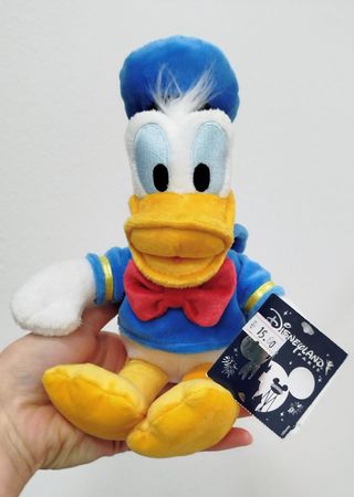 Peluche del personaje Donald Duck de Disney con etiqueta