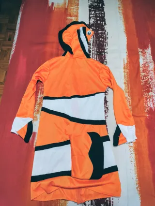 Disfraz de pez payaso para niños, inspirado en Nemo. - Diseño con capucha. - Cierre de cremallera frontal. - Mangas largas. - Colores naranja, blanco y negro. Talla 7 años. Usado una única vez.
