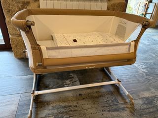 Cuna de colecho de la marca Jane, con un diseño moderno y funcional. Dispone de una amplia ventana frontal y en los laterales para vigilar al bebé con facilidad y sin necesidad de levantarte. Compatible con todo tipo de camas aunque también la podrás usar como cuna independiente. Distintas posiciones de elevación. Incluye: - colchón transpirable - relleno nórdico - funda nórdica y sábana bajera - cojín Está nueva. Usada dos veces.