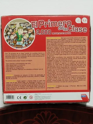 Juego de mesa El Primero de la Clase de Falomir Juegos. - Incluye 2.000 preguntas de primaria. - Recomendado para mayores de 8 años. El Primero de la Clase 2000 de Falomir Juegos es un juego de mesa educativo y entretenido, diseñado para complementar el aprendizaje escolar de manera lúdica y estimulante. Este juego es perfecto para niños a partir de 8 años, ofreciendo una experiencia de juego que combina el desafío intelectual con la diversión. Características más importantes de El Primero de la Clase 2000: Edad recomendada: Ideal para niños a partir de 8 años, adaptándose perfectamente a su nivel educativo. Número de jugadores: