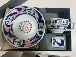 Conjunto de vajilla infantil de la marca Sargadelos. - Incluye 2 platos. - Incluye 1 taza. -1 tacita - Diseño de Sargadelos Planta do Castro.