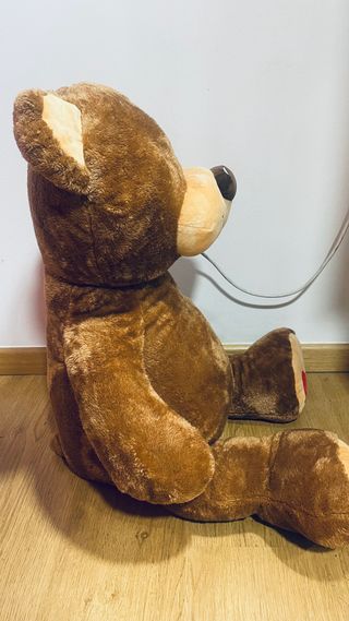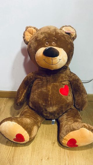 Este tierno peluche de oso es perfecto para abrazar. Suave y de gran tamaño, ideal para decorar o como compañero. - Color marrón. - Material de felpa. - Diseño de oso. - Detalle de corazón en la pata.