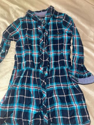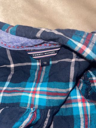 Vestido de niña de la marca Tommy Hilfiger. - Diseño de cuadros en tonos azules, blancos y rojos. - Talla 98.