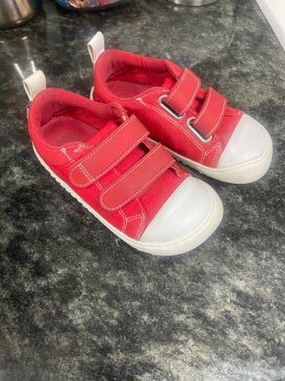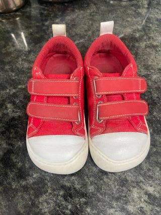 Zapatillas rojas de lona con puntera blanca y cierre de velcro. Zapato Feroz talla 28 - Cierre de doble velcro. - Puntera reforzada. - Tirador trasero para facilitar el calce.