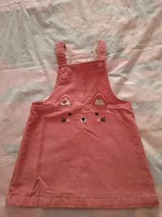 Adorable pichi de pana rosa de la marca C&A, talla 2. Presenta un divertido diseño de gatito bordado en la parte delantera con orejitas. - Color: Rosa - Talla: 2 - Diseño: Gatito - Material: Pana