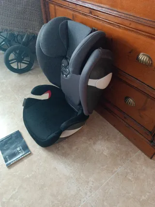 Silla de coche Cybex para niños del grupo 2-3. Diseñada para ofrecer seguridad y comodidad. - Tapicería en color gris. - Incluye manual de usuario Cybex Solution M-Fix.