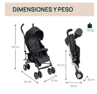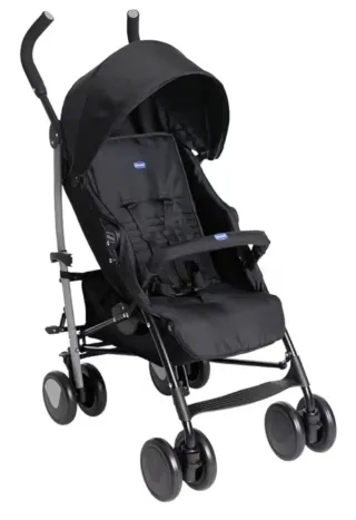 Carro de paseo Chicco Echo Lite, ideal para bebés desde recién nacidos hasta los 22 kg. Es ligero y fácil de plegar. - Color: Negro. - Respaldo reclinable.