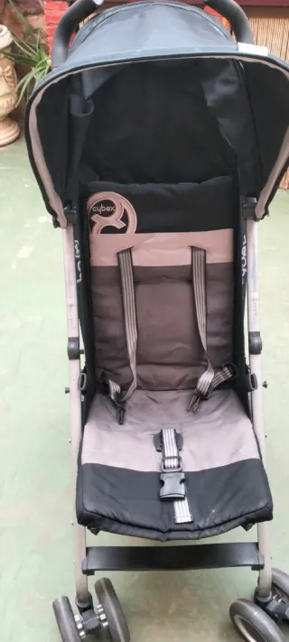 Cochecito de paseo Cybex en color negro y beige. - Diseño moderno y funcional. - Asiento acolchado. - Arnés de seguridad de 5 puntos. - Capota. - Ruedas para facilitar el desplazamiento.