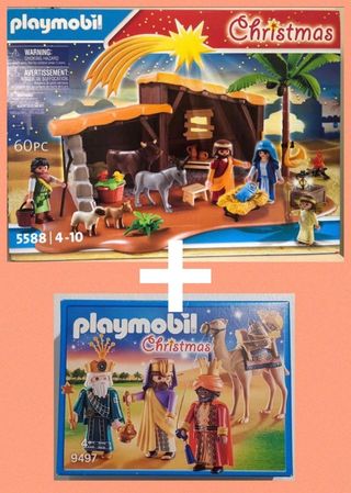 Pack de Playmobil de Navidad que incluye el Belén y los Reyes Magos. - Set Belén: 60 piezas, referencia 5588. - Set Reyes Magos: referencia 9497.