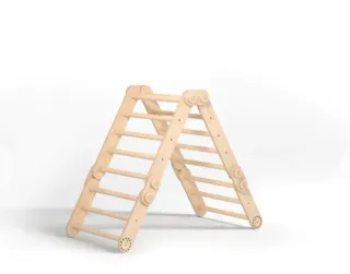 Triángulo de escalada de madera, ideal para el desarrollo motor. - Fabricado en madera natural. - Diseño plegable para fácil almacenamiento. - Múltiples configuraciones posibles.