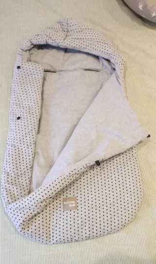 Saco para silla Grupo 0 de la marca Walking Mum. Presenta un diseño con estampado de estrellas en tonos grises y negros. - Estampado de estrellas. - Color gris y negro.