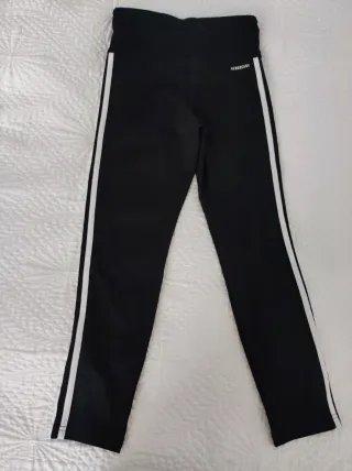 Mallas deportivas Adidas para niña, talla 11-12 años. Perfectas para el día a día o para entrenar. - Color negro. - Diseño con las tres bandas blancas características de Adidas a los lados. - Logo de Adidas en la parte frontal.