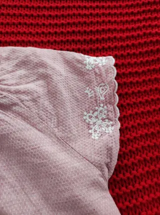 Vestido de la marca Neck&Neck en color rosa, ideal para niñas de 8 a 9 años. Presenta un bonito bordado en las mangas. - Detalle de bordados blancos en los puños. - Cierre de botones en la espalda. - Tejido con textura.
