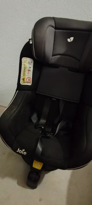 Silla de coche negra de la marca Joie. - Diseño acolchado para mayor comodidad. - Sistema de arnés de seguridad. - Incluye etiqueta de airbag.