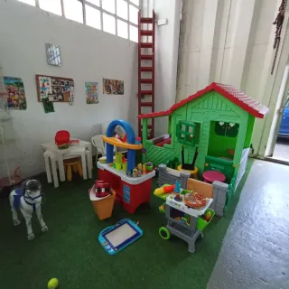 Casita de juegos infantil, cocinita y juguetes