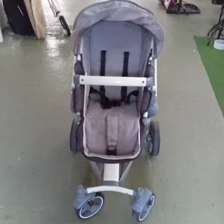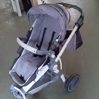 Silla de paseo Baby Jogger en color gris y blanco. Diseño moderno y funcional. A recoger en Tolosa. - Capota amplia. - Arnés de seguridad de 5 puntos. - Reposapiés ajustable. - Cesta de almacenamiento inferior. - Ruedas delanteras giratorias.