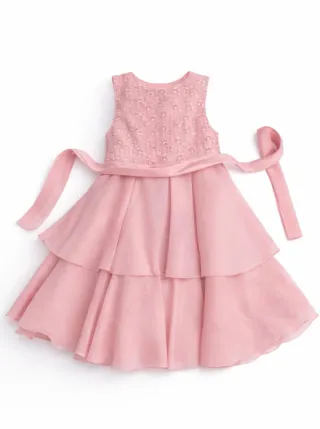 Vestido de ceremonia en color rosa de la marca Mayoral. - Talla 8. - Cuerpo con bordado floral y pedrería. - Cinturón de satén. - Falda con dos volantes. - Lazo de pelo a conjunto Se ajusta mediante cremallera trasera invisible y lazada lateral que permite adaptar ligeramente el contorno y estiliza la silueta. Delicado vestido infantil en tono rosa empolvado, ideal para ceremonias, comuniones, bodas o eventos especiales. Presenta cuerpo bordado con pequeñas flores en relieve y detalles en hilo sutilmente brillante que aportan un acabado elegante y muy cuidado. La falda de doble capa con caída fluida da movimiento y ligereza