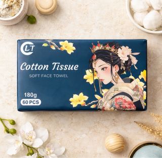 Paquete de toallitas faciales de algodón marca LT. Son suaves y aptas para uso húmedo y seco. Multiuso. - Contiene 60 piezas. - Peso: 180g. - Material suave. - Sin pelusa.